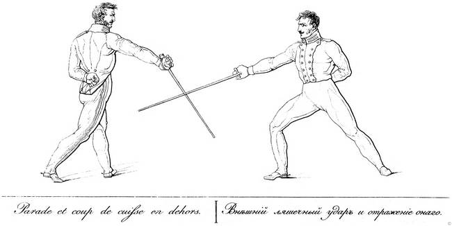 [Закрыть]. В XIX веке несколько ассо состоялось и в России, их устраивали в основном приезжие, чаще всего французские фехтмейстеры. С. П. Жихарев осенью 1806 года записал: «На будущей неделе фехтовальный учитель Севенар с сыном будут держать публичный assautс другим таким же фехтовальщиком, как и они сами, сэром Сибертом» [ 76, с. 10–11].