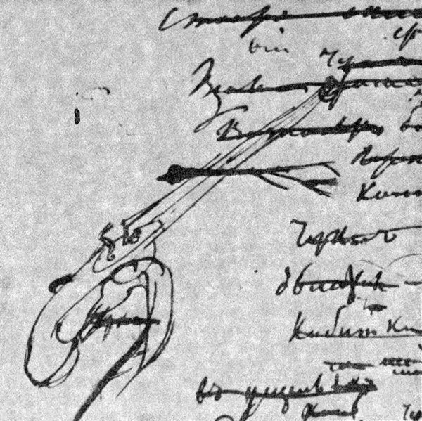 Пистолет. Рисунок А. С. Пушкина. 1828