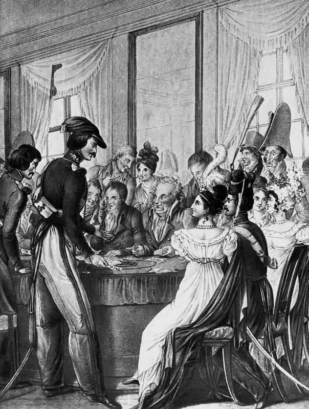 Русские в игорном доме в Париже. Литография. Первая половина XIX в.