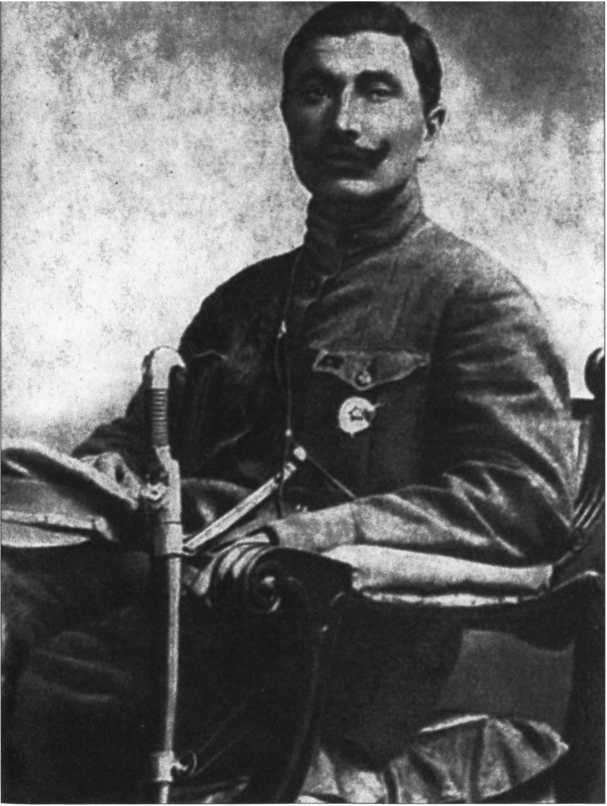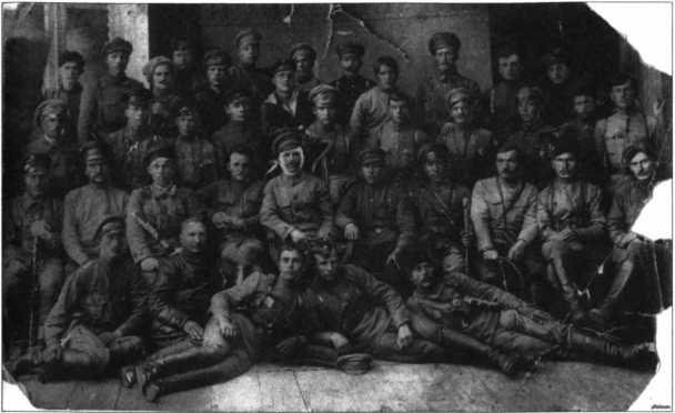 Командный состав и политработники 25-й стрелковой дивизии после занятия г. Уфы, июнь 1919 г. В центре начдив В.И. Чапаев, рядом с ним слева комиссар Д.А. Фурманов, у ног Чапаева слева порученец и командир батальона связи П.С. Исаев («Петька»)
