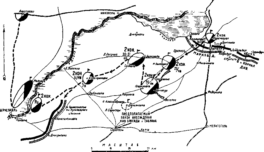 Положение сил сторон во время набега конного корпуса Жлобы на Мелитополь