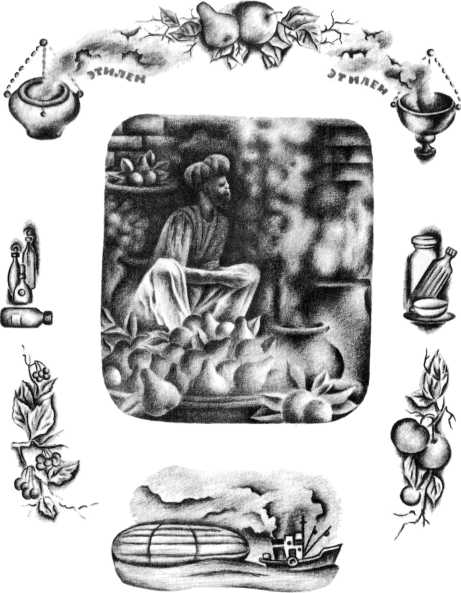 Старик садовник довел до спелости плоды одного дерева. В наши дни так поступают со многими тоннами плодов и овощей. Слуга хана разложил плоды в своей хижине. Теперь их помещают в специальную этиленовую камеру. Иногда укладывают прямо на полки. Иногда вносят в ящиках с отверстиями. Садовник окуривал плоды дымом ладана. В камеру раз в сутки вдувается чистый этилен. Лимоны, яблоки, груши, помидоры созревают в два, а то и в пять раз быстрее, поглощая газ со сладковатым запахом – овощной фимиам.