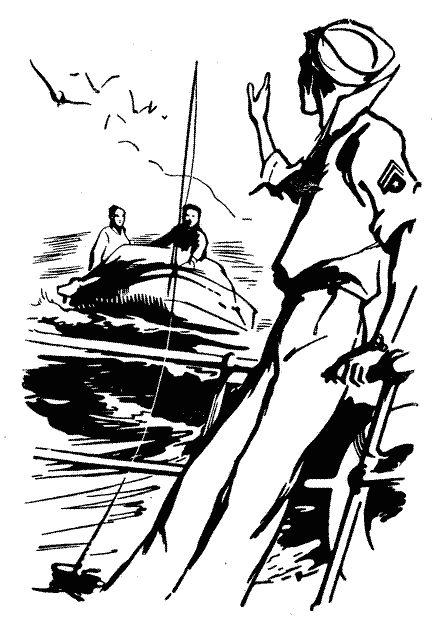 Останнє прощання. Катери з журналістами ще раз пропливають навколо човна. Ми машинально прощаємося з ними помахами рук. І дивно. Люди раптом стали для нас якимись далекими. Здається, ми відгороджені од них муром. Так! Саме в цю мить ми зрозуміли весь трагізм нашого становища: ми самотні! Наше життя в морі тепер щось реальніше, відчутніше і важливіше, ніж усі взаємини з тими людьми, які перебувають від нас недалеко. «Та пливіть же, пливіть!»