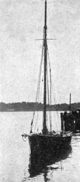 Все паруса новые, изготовлены из двенадцатиунциевого хлопка компанией Burrows, Inc., которая проявила к ним большой интерес. Швы грота и стакселя проходят вверх и вниз прямыми стежками. Грот привязан к деревянной лату на гике, имеет обручи под растяжкой и крючки на проволочном джекстейе выше. Проволочный джекстей проходит через обручи и соединен с железным талрепом на мачте с гуськом. Лотковый трос из манилы. Я беру с собой один запасной стаксель, так как это самый полезный парус на кутере, с галсовыми ушками на стакселе, тремя рядами рифов, левым и правым шкотами, без гика и без травеллера. Фок-парус установлен на кольце, перемещающемся по бушприту. Первый, второй и третий фок-паруса сделаны из льна, с двумя вымпелами фок-шкота и левым и правым шкотами, закрепленными около румпеля. Я беру с собой легкий стаксель-топсель для использования при штиле и переменных ветрах, который крепится к топ-мачте. Есть баллонный стаксель, который является очень полезным парусом, и штормовой трисель на случай, если я потеряю гик, сделанный из немного более прочного полотна.