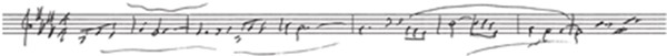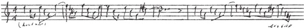 – Если честно, тут особенно нечего сказать. Разве что мне сразу понравилась мысль использовать органный пункт на доминанте, который опускается на мелодически «ошибочную» ноту – субдоминанту в ми мажоре. Я впервые использовал это решение, прежде я никогда не писал ничего подобного… Таким образом си, на которой строилась мелодия, сменялась в басу на ля, которая как раз давала аккорд ля мажора. Когда мы учились в консерватории, мы нередко использовали такой ход. Это назвалось «подменной» или «ошибочной нотой» – она не входила в трезвучие и применялась для гармонического обогащения аккорда или создания диссонанса.