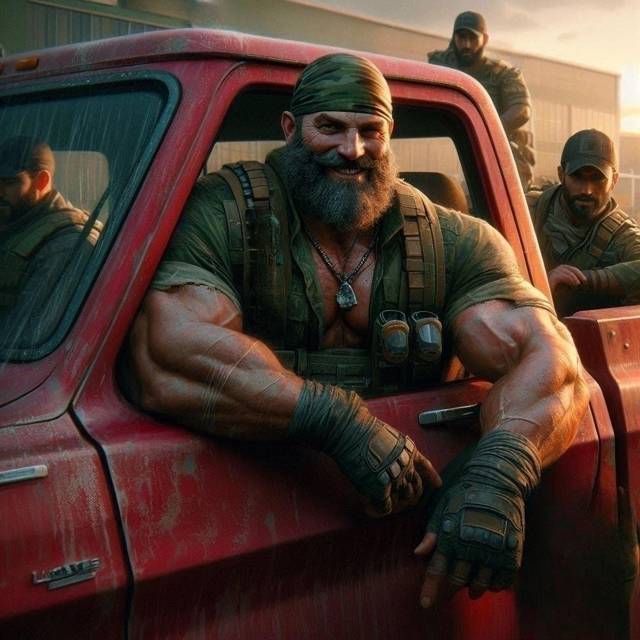 Ратай с парнями на своем красном пикапе