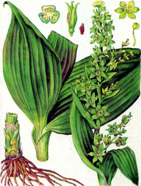Чемерица белая (V. album L.). Близка по составу алкалоидов к чемерице Лобеля. Растёт в Западной Украине на склонах Карпат. Её также можно использовать для борьбы с вредителями. От чемерицы Лобеля отличается чисто–белыми листочками околоцветника и горизонтально отстоящими веточками соцветия.