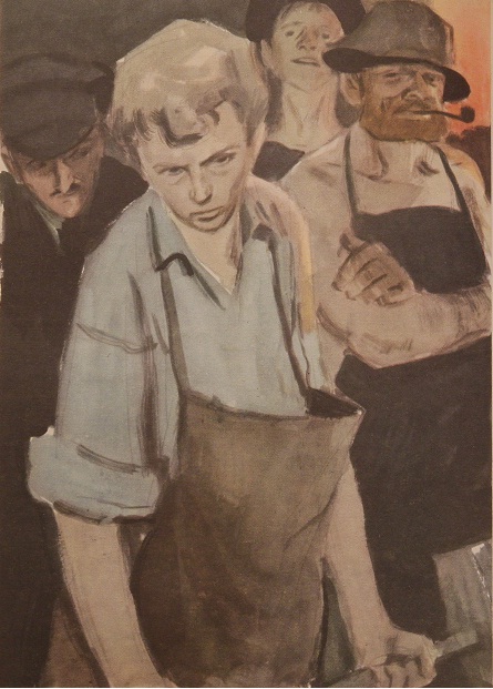 Мальчик смотрел на покатый потолок, о который он уже ударился головой, на лубочную картинку, приколотую к стене четырьмя булавками, потом оглядел лежавший на постели костюм, приготовленный для него к завтрашнему дню: широкие холщовые синие штаны, которые у рабочих называются просто «портками», и блузу, крепко прошитую в плечах, чтобы она не разорвалась в пройме при резком движении рук. В брошенной на одеяло одежде, казалось, было что-то усталое, беспомощное, словно изнуренный человек без сил повалился на кровать, раскинув руки и ноги.