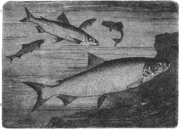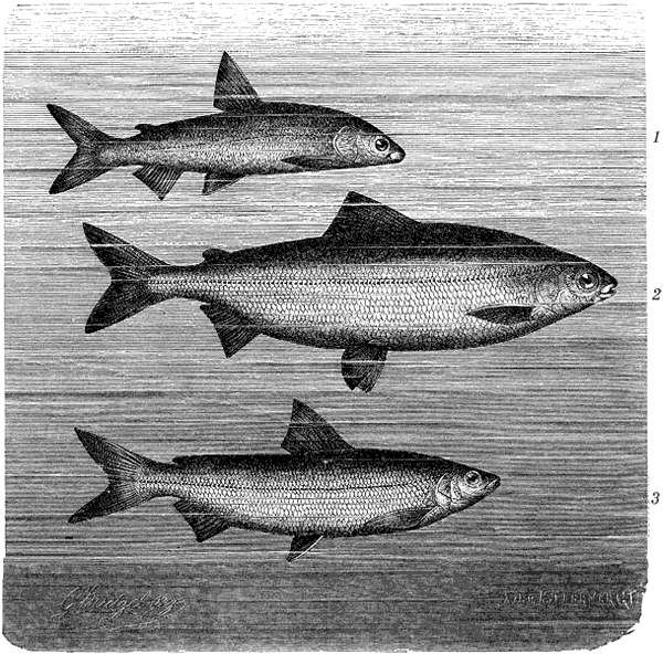 К числу сигов, живущих в море и отсюда регулярно поднимающихся по рекам во время нереста, принадлежит морской сиг (Coregonus oxyrhynchus)[79]79