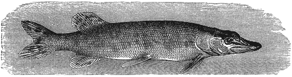 Наша обыкновенная щука (Esox lucius) – самый страшный хищник европейских озер и рек, «акула внутренних вод». Род, представителем которого она служит, отличается полной зубной системой и мелкими, крепко сидящими чешуйками; добавочные жабры невидимы, брюшные плавники прикреплены на середине брюха, спинной и заднепроходный – на конце тела, недалеко от очень большого, несколько вырезанного посередине хвостового плавника. Кроме того, особенно характерны для щуки приплюснутая голова и широкая морда с большим разрезом рта. По цвету и рисунку эта рыба чрезвычайно варьирует, но вообще можно сказать, что спина черноватая, более или менее одноцветная, бока серые, разрисованы мраморными или поперечными пятнами, а брюхо белое, усажено черными крапинками. Грудные и брюшные плавники красноватые, спинной и заднепроходный буроватые; хвостовой плавник имеет обыкновенно на верхнем крае черные пятна. Длиной щука не уступает ни одной из лососевых рыб, весом разве семге и дунайскому лососю; длина ее может достигать 2 м, вес 35 кг, хотя щук длиной в 1,3 м и весом в 25 кг должно считать редким явлением.