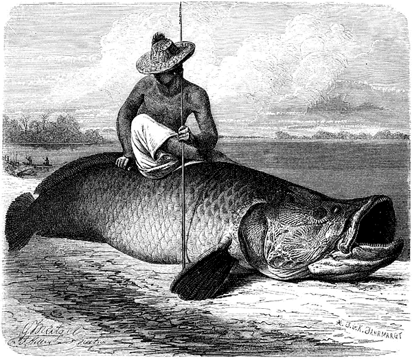 «Индейцы, – рассказывает Шомбургк, – привезли нам, кроме множества других рыб, также гиганта пресных вод Гвианы – арапайму, и мы с изумлением смотрели на это громадное животное, которое заполняло почти целый кориал, было длиной 3 м и весом, наверное, 100 кг». Из рек Британской Гвианы рыбы эти живут лишь в Рупунуни; но в этой реке они водятся в значительном числе. В Рио-Бранко, Негро и Амазонке они, говорят, тоже довольно обыкновенны.