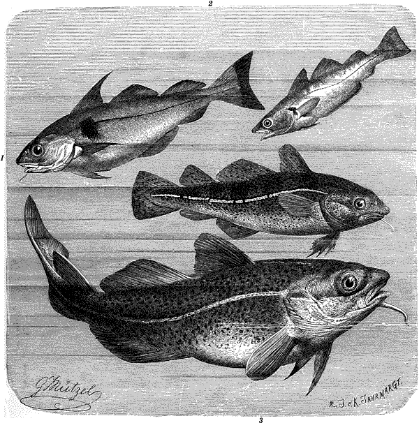 Эта рыба – треска, одна из самых важных промысловых рыб на земном шаре, лов которой неустанно ведется вот уже несколько столетий. Из-за этой рыбы происходили кровопролитные войны; она ловится ежегодно в количестве нескольких сотен миллионов экземпляров, и, несмотря на подобное истребление, она все еще изобилует, по крайней мере до сих пор, благодаря невероятной плодовитости[168]168