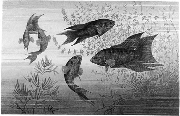О жизни макроподов в неволе в настоящее время писано много и сделано также немало хороших наблюдений. Однако я опускаю все, что читал по поводу этих рыбок, и ограничусь описанием Бенеке, составленным специально для «Жизни животных», тем более что это в то же время будет и объяснением рисунка, сделанного со строго научной точностью и под руководством самого Бенеке.