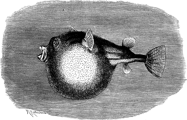 По своему образу жизни и поведению иглобрюхи во всех отношениях походят на двузубов. В глубокой воде они плавают хотя и не особенно проворно, но все же не хуже других рыб; но, заметив опасность, они быстро устремляются к поверхности, глотают воздух и надуваются до такой степени, что прежде морщинистое тело их становится совершенно гладким; после этого они переворачиваются на спину и превращаются в настоящий шар, со всех сторон усаженный иглами[299]299
