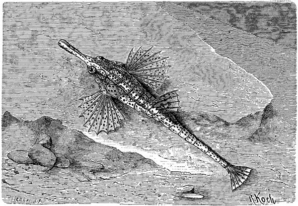 На песчаном грунте мелкого морского прибрежья проживают, вероятно, все четыре вида пегасов; это очень странно сложенные маленькие рыбки, тело которых покрыто со всех сторон костяными пластинками. На туловище эти пластинки срослись между собой, а на хвосте – подвижны. Особенно бросаются в глаза длинные, широкие, горизонтально стоящие грудные плавники и далеко выдающаяся вперед верхняя часть рыльца. Длиннохвостого пегаса (Pegasus natans) мы изобразили на нашем рисунке. Все виды очень мелкие.