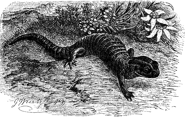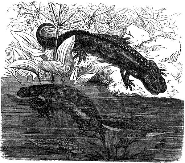 [Закрыть]. Днем она оставляет свои убежища только после дождя, так как является ночным животным. Сухая теплота или действие лучей солнца отнимают у ее тела так много необходимой для него влаги, что она может от этого умереть. Если несколько дней нет дождя, то, несмотря на росу, тело саламандры делается худым и жалким, между тем как после дождей она становится толстой, гладкой и выказывает все признаки здоровья. Движения ее медленны и неуклюжи, она ползает, извивая тело в стороны, а плавание ее также похоже на ходьбу, только главным органом передвижения является хвост. Способности ее незначительны, внешние чувства мало развиты, а понятливость ничтожна. Хотя ее часто находят вместе с другими животными ее вида, но ей нельзя приписать стремления к общественности, так как саламандра о других не заботится и сильная в случае голода, не задумываясь, съест более слабую. Оба пола отыскивают друг друга только во время спаривания, но как только это дело кончено, то всякая связь теряется, и они соединяются вместе, только если находят удобное убежище в одной и той же норке. Саламандры питаются медленно двигающимися животными, преимущественно слизняками, земляными червяками и жуками, а при случае мелкими позвоночными животными; иногда съедается разом много пищи, но саламандры могут и голодать в течение нескольких недель и даже месяцев. Они едят только тех животных, которые шевелятся.