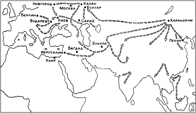Карта монгольских походов в 1220-40-х годов.