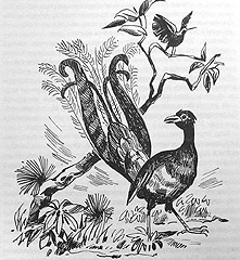 Звероловы с любопытством смотрели на игры пернатых строителей шалашей. Наконец Томек протянул руку по направлению к часам. Птицы с писком, часто махая крылышками, бросились врассыпную. Тони вручил Томеку часы, и наши путешественники вернулись в лагерь, оживленно обсуждая приключение. Один лишь Динго возвращался с неудовольствием. Он с гневом следил за полетом всех носившихся в воздухе птиц.