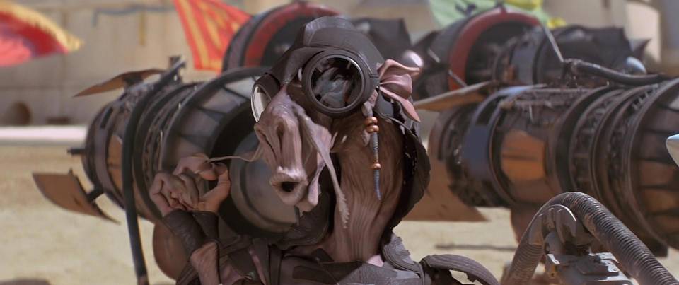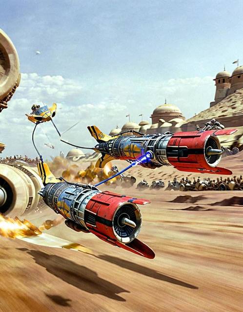В этот момент его догнал звук двигателей пода Себульбы, работавших в форсированном режиме. Разъярённую рожу контрабандиста мальчик заметил в экран камеры заднего вида: беснующийся и матерящийся даг был страшен. Но именно этот вид и поведение соперника окончательно привели в чувство Энакин. Гонка ещё не была закончена – впереди ждали сто километров до финиша.