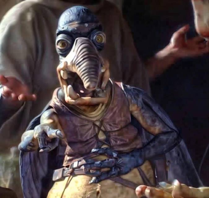 – Ч-чего⁈ – голубой цвет кожи владельца небольшого предприятия по впа… продаже столь нужного каждому галакту товара, вмиг стал серым, а в круглых глазах поселилась небольшая паника. Впрочем, опытный Уотто быстро справился с собой и пулей понёсся к выходу. – Так! Быстрее! А? Э-э-т-т-то, что ещё за хреновина⁈ Это чего такое-то, Энакин? – тыкая когтистой лапой на голову крайта, спросил он.