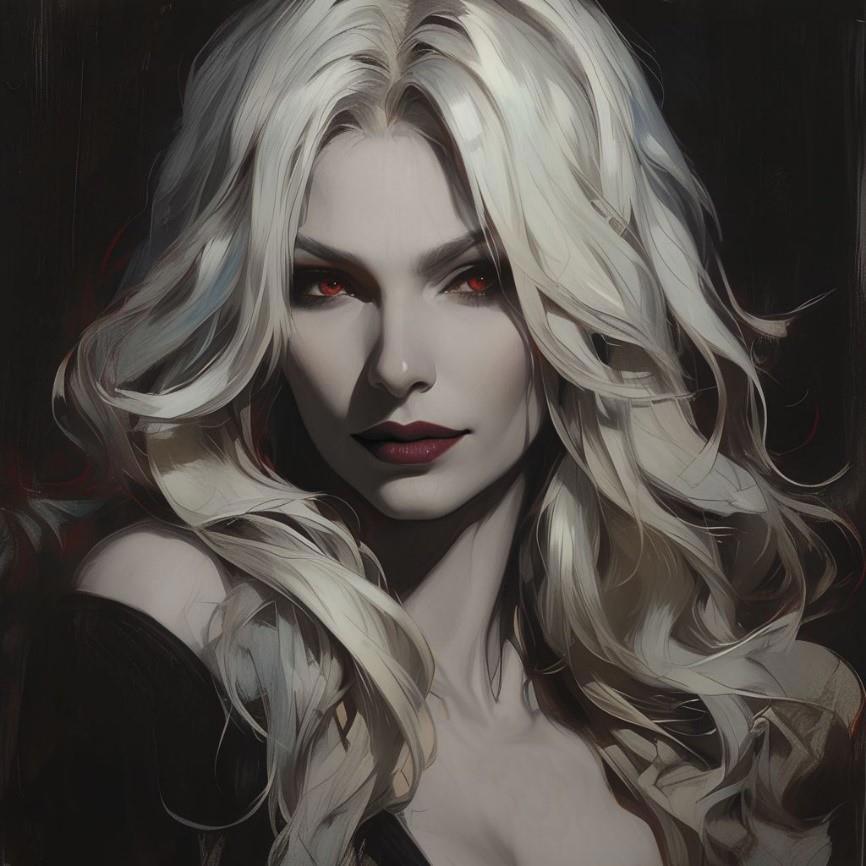 Вслед за рукой в прорези появилась прекрасная ступня, что ступала по воздуху, словно по земле. Кожа у женщины была полупрозрачно и все вены и часть костей скелета вместе с органами можно было увидеть невооружённым взглядом. с каждым шагом кожа теряла свою прозрачность и становилась алебастровой. Из голого черепа начали вырастать волосы и также стремительно терять цвет, приобретая светлый оттенок. Тёмные глаза стали на мгновение прозрачными, но после начали наливаться краснотой. Аккуратные губы приобрели бордовый оттенок, а скулы стали более заметными.