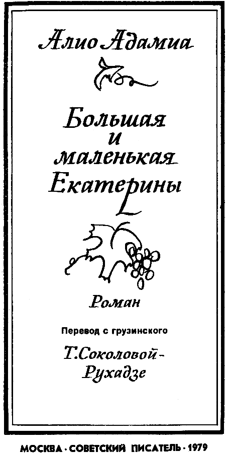 Роман грузинского писателя Алио Адамиа «Большая и маленькая Екатерины» (1974) – заметное явление в грузинской прозе семидесятых годов. Для самого А. Адамиа, чьи стихи, рассказы, пьесы, очерки и статьи начали появляться еще в тридцатые годы, это многоплановое, актуальное по тематике произведение стало большой творческой удачей.