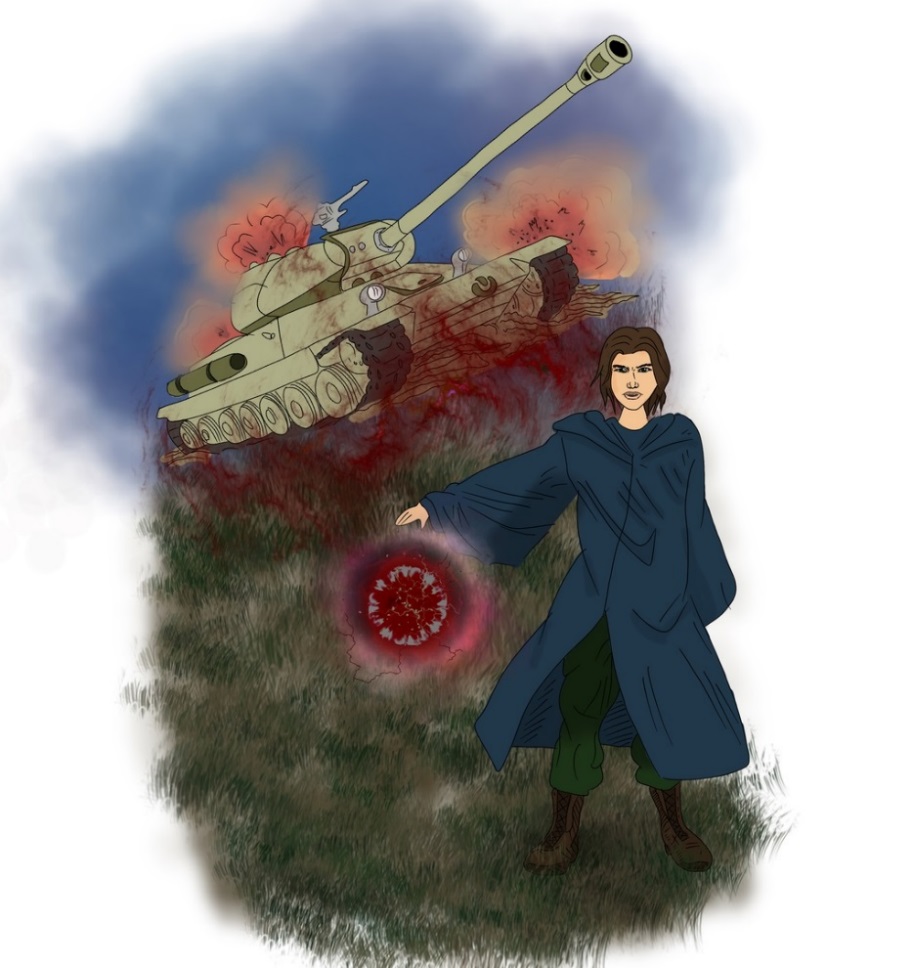 Зелёный луч вырвался из поднятой руки Томаса, и танк взорвался. Взрыв был таким мощным, что охватил рядом идущих военных. Одежда загорелась, и они в панике заметались, истошно крича. Обугленные тела падали плашмя, не подавая больше признаков жизни. Им повезло меньше, чем тем, кого накрыли обломки танка. Те умерли быстро. Их просто накрыло огненное железо, хороня под собой.