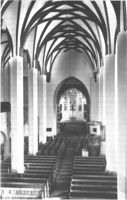...Через неделю из Кётена прибыли четыре повозки с вещами, а затем и две коляски, в которых расположился новый кантор со своей семьей. Бах занял служебную квартиру в левом крыле здания школы. Она находилась на втором этаже, и окна ее выходили на «Свободную площадь». Посредине площади был большой каменный колодец, у которого женщины могли перекинуться словами и узнать последние новости.