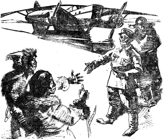 – Хо! – опять началось удивление. – Вот так птица. Она и муку, и сахар привезла. Кинкэ! Кинкэ! Это ты позвал этих людей – летчиков? Они как будго знали, что у нас кончаются продукты. Молодцы! Кинкэ – ты тоже летчик. Ты первый из нас поднялся к солнцу, отныне тебе имя будет Кинкэ-летчик!