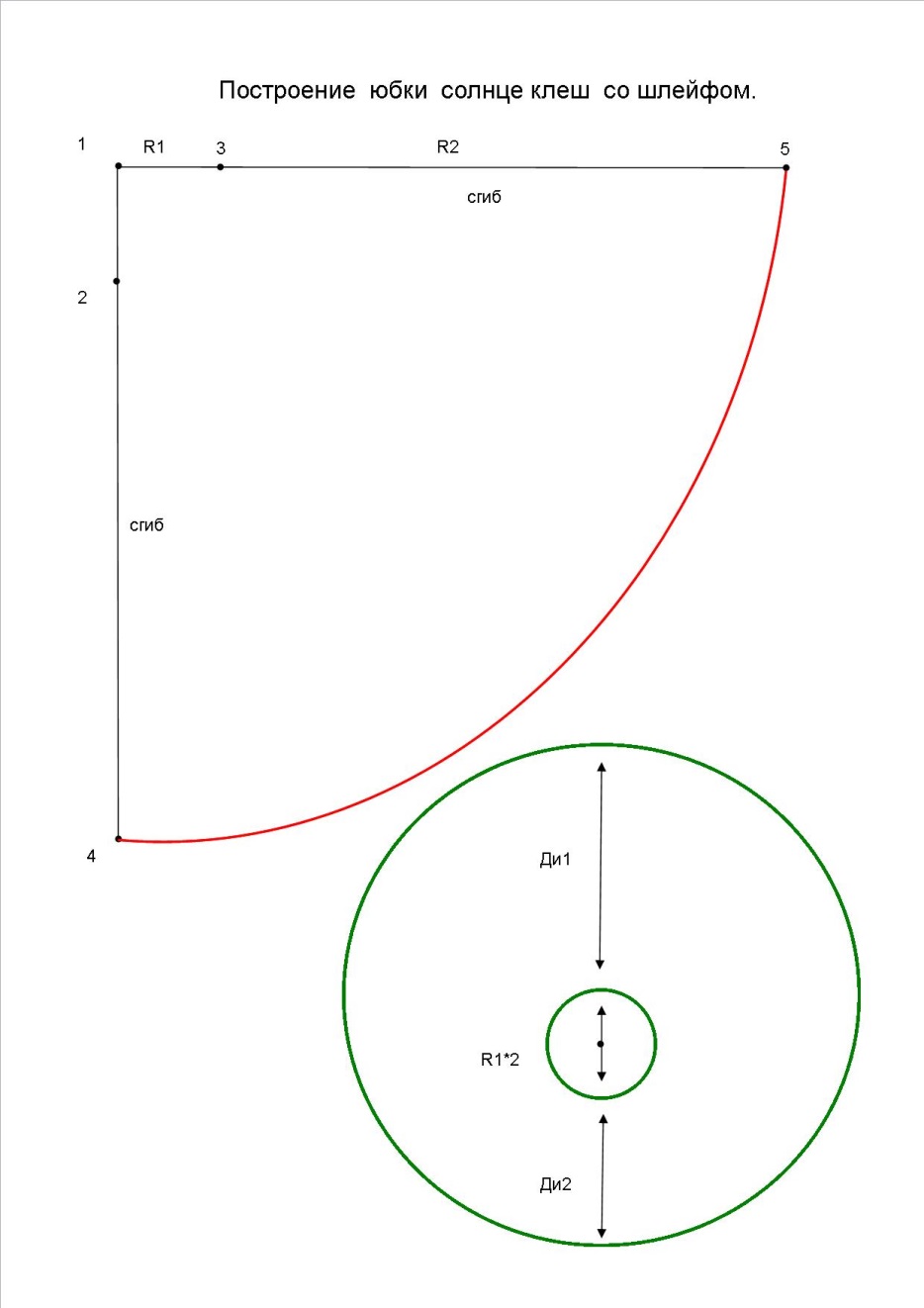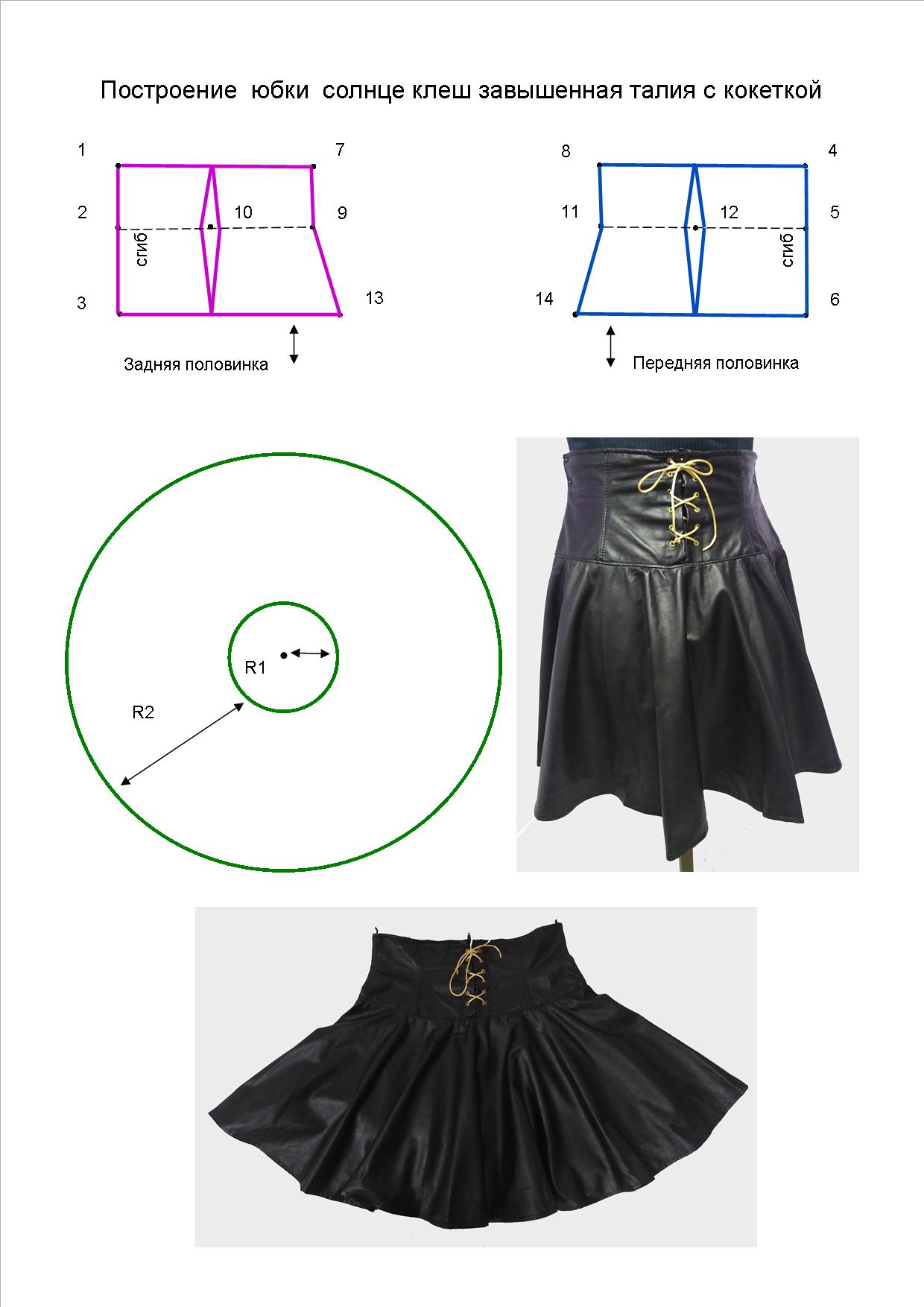 Построение юбки солнце клеш завышенная талия с кокеткой