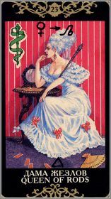 Ключевые слова к Королеве Жезлов: обаяние; очарование; сексуальная привлекательность; любовное приключение; знакомства; дружеские контакты; мудрый совет; доброжелательность.