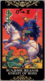 Ключевые слова к Рыцарю Жезлов: чувство собственного достоинства; отвага; мужество; авторитет; врожденное благородство; положительные влияния; энтузиазм в деятельности; организационные способности; поездка.