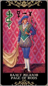 Паж Жезлов чаще всего символизирует следующие профессии и виды деятельности: философ; адвокат; законодатель; духовное лицо; член парламента; биограф; коневод; преподаватель верховой езды; инструктор по вождению автомобилей; преподаватель вуза; путешественник; миссионер.