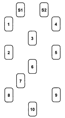 1.9. «Партнерский»Очень часто клиентов интересуют проблемы, связанные с областью чувств и отношений с партнером. Для анализа ситуации, когда у вопрошающего есть партнер, но он либо не уверен в его чувствах, либо его беспокоит поведение партнера, великолепно подходит расклад с названием «Партнерский». В этом случае выбираются два сигнификатора: один – символизирующий вопрошающего, а второй – обозначающий его партнера. После проведения предварительных действий клиента просят произвольно выбрать десять карт, которые раскладываются следующим образом: