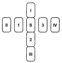 Выбрав сигнификатор, надо отделить Старшие Арканы от Младших, перетасовать их по отдельности и дать переложить клиенту. Затем клиента просят произвольно выбрать четыре карты Старших Арканов и раскладывают их следующим образом: