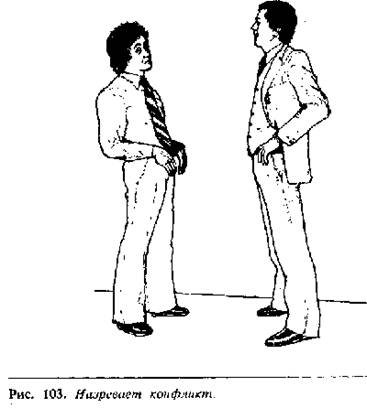 Если бы эти мужчины стояли прямо друг против друга, а ногами они плотно упирались бы в землю, драка была бы более вероятна (рис. 103).