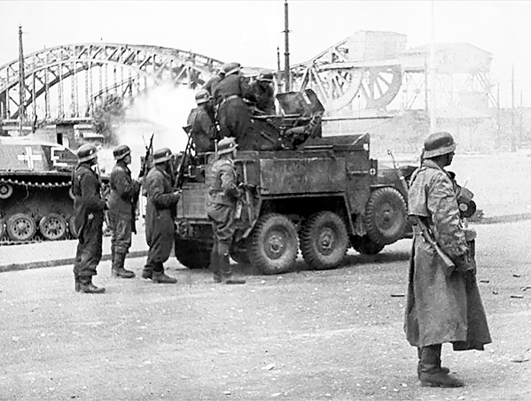 Немецкие войска на набережной Западной Двины в Риге, на дальнем плане Земгальский мост. Июнь 1941 г.