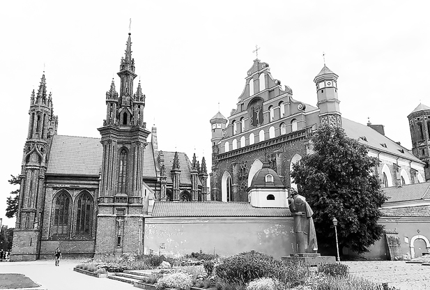Вильнюс сегодня. Костел Святой Анны и церковь Святых Бернарда и Франциска. Рядом памятник Адаму Мицкевичу