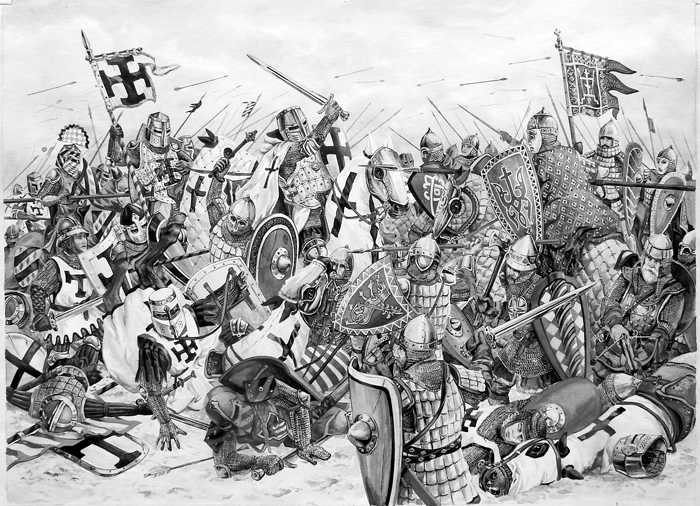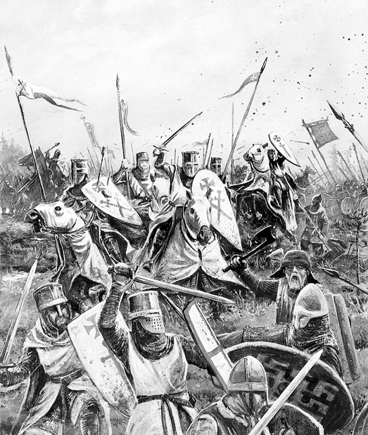 Тяжелая кавалерия крестоносцев была вынуждена принять бой в болотистой местности, где все преимущества были на стороне легковооруженных язычников. И крестоносцы потерпели сокрушительное поражение.