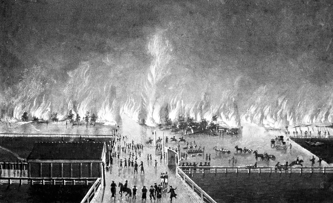 Это было страшное зрелище! В один миг в одиннадцати местах запылал огонь. Нашли черные тучи, и поднялся вихрь с дождем. Сначала ветер понесся на город, но вскоре обратился назад и распространил пламя далее черты домов, назначенных к сожжению и в которые жителей приглашали возвратиться, что некоторыми и было сделано. Не помышляя об опасности, многие спали. Пробужденные огромным заревом, люди не успели спасти имущество и считали себя счастливыми, если удалось сохранить жизнь.