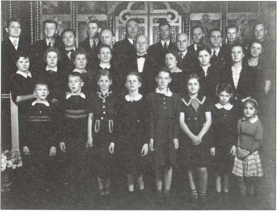 Хор В. С. Лукши при старом Свято-Скорбященском соборе на ул. Фултон. 1939. Фото из собрания В. В. Шкуркина