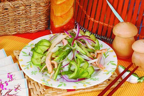 Японские салаты из рыбы и морепродуктов можно готовить не только со свежими, но и с вареными овощами. Овощи рекомендуется варить в кожуре, и только потом очищать, чтобы сохранить вкус и витамины.