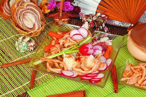 Одна из особенностей японской кухни – необычные сочетания продуктов, что дает простор для кулинарных экспериментов. В салаты из морепродуктов можно добавить свежие фрукты или заправить их сладким соусом.