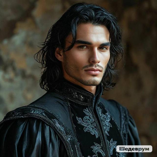 Чёрные глаза-угольки, немного вытянутое, скуластое лицо. Нос с горбинкой. Тёмно-русые, почти чёрные волосы до плеч. Узкие губы, словно вырезанные на лице. Надменные, властные. Приказам таких людей повинуются безоговорочно. Такие люди не колеблясь посылают полки на штурм, а осуждённых – на эшафот. И рост – высокий-высокий. Каланча, а не человек.