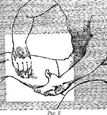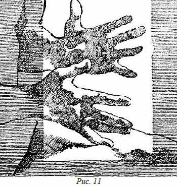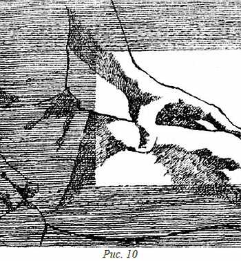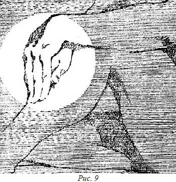 Пальцы массирующей руки должны быть расположены так, чтобы глубже проникать в глубину массируемой мышцы. На плоских мышцах (например, на внешнем участке предплечья) пальцы должны быть сведены (сомкнуты), это позволяет массировать более эффективно. Этот прием необходимо применять в местах соединения мышцы с сухожилиями (то есть ближе к суставам; рис. 9).