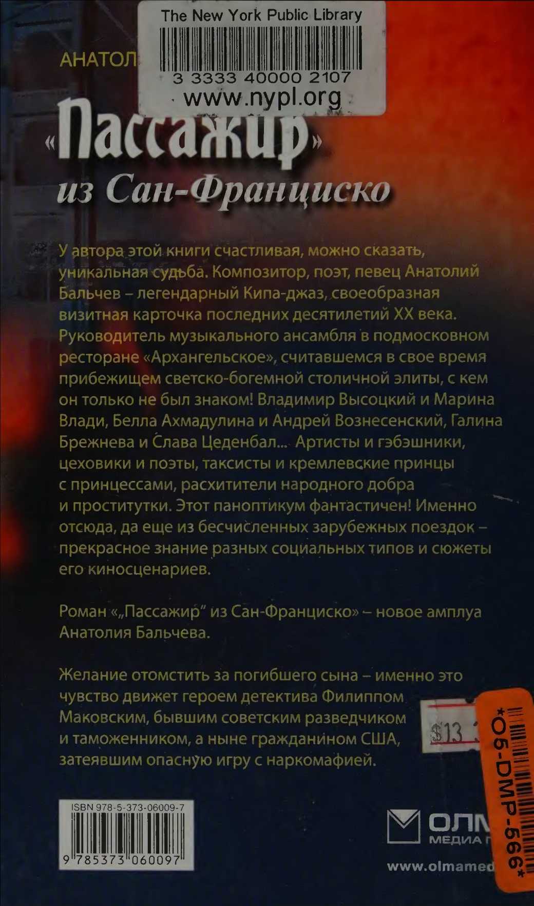 А сейчас я рад представить читателю новое амплуа Анатолия Бальчева – увлекательный роман «Пассажир из Сан-Франциско». Бросайте все земные дела и окунайтесь в вечность!