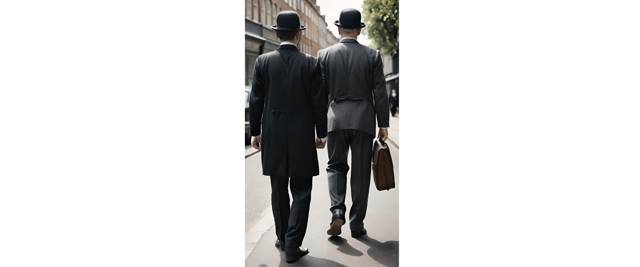 Устроившись, приняли ванную, смывая походную грязь, затем отправились одеваться, чтобы принять вид буржуа. Владелец магазина с восторгом принял золотые царские червонцы вместо марок, подсуетился и усадил супругу за швейную машинку – подогнать костюмы и лёгкие пальто под худые фигуры двух русских. Посетили цирюльника. Генрих, облагороженный умелыми руками, с придирчивостью осмотрел своё отражение в зеркале и остался доволен: подтянутый молодой человек в котелке с круглым верхом, при галстуке, в костюме-тройке и наброшенном поверх него сером пальто, да ещё с тростью в руке, смотрелся преуспевающим маклером, его старший товарищ – адвокатом средней руки. Глеб оставил короткую бородёнку, едва подросшую из щетины за время лесного променада, соединённую с светло-русыми усами колечком вокруг губ. Через месяц-полтора поросль начнёт напоминать ленинскую. Генрих предпочёл усишки а-ля Чарли Чаплин, впоследствии чаще ассоциировавшиеся с Адольфом Гитлером. Такие носили многие ветераны пехоты Мировой войны – они не мешали плотному прилеганию противогазной маски.