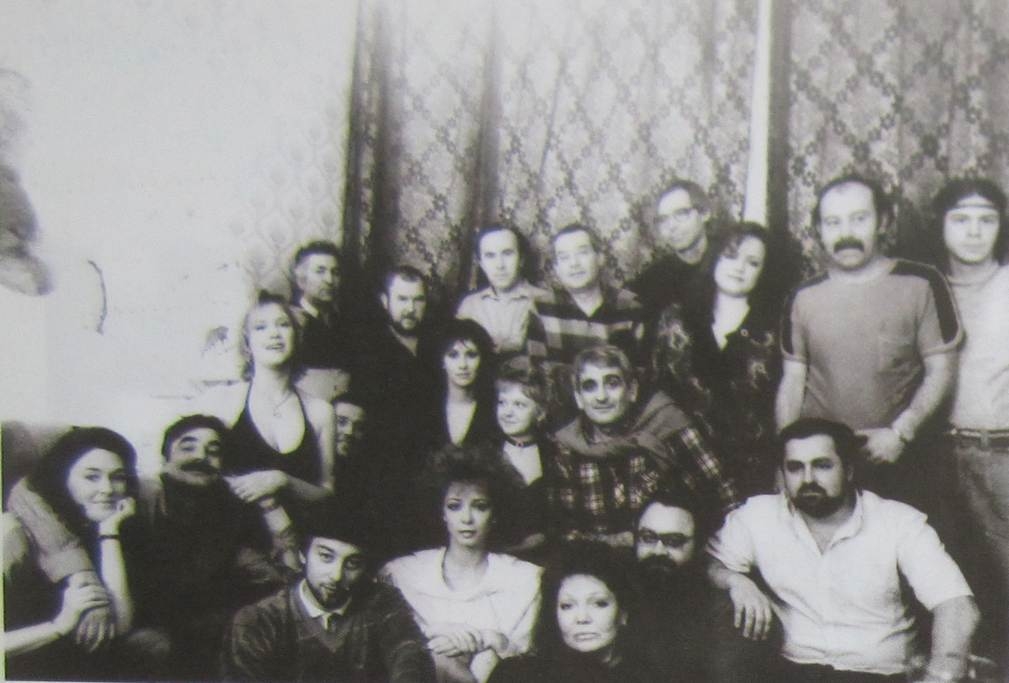 Съемочная группа фильма «За прекрасных дам!». В центре – А. Эйрамджан. Над ним справа – Е. Цыплакова. Слева от него: М. Сергеечева, И. Шмелева, А. Абдулов, И. Розанова, А. Панкратов-Черный. Под Шмелевой – А. Аржанник. Слева вверху крайний – оператор В. Папян