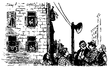 Ровно в девять утра грянула песня. Она была такой громкой, что, казалось, певец вскарабкался на водосточную трубу под самые окна, а подпевавший ему хор расположился где-то на ступеньках пожарной лестницы.