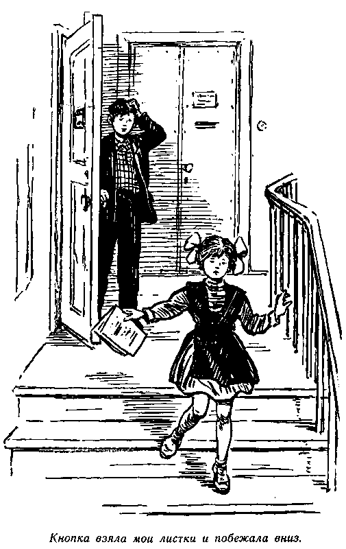 Кнопка двумя пальчиками, словно брезгуя, взяла мои листки и сразу побежала вниз. Только уже с третьего этажа она крикнула: «Спасибо!» И это «спасибо» гулко разнеслось по всем этажам. Знала бы Кнопка, за что она благодарила меня!..